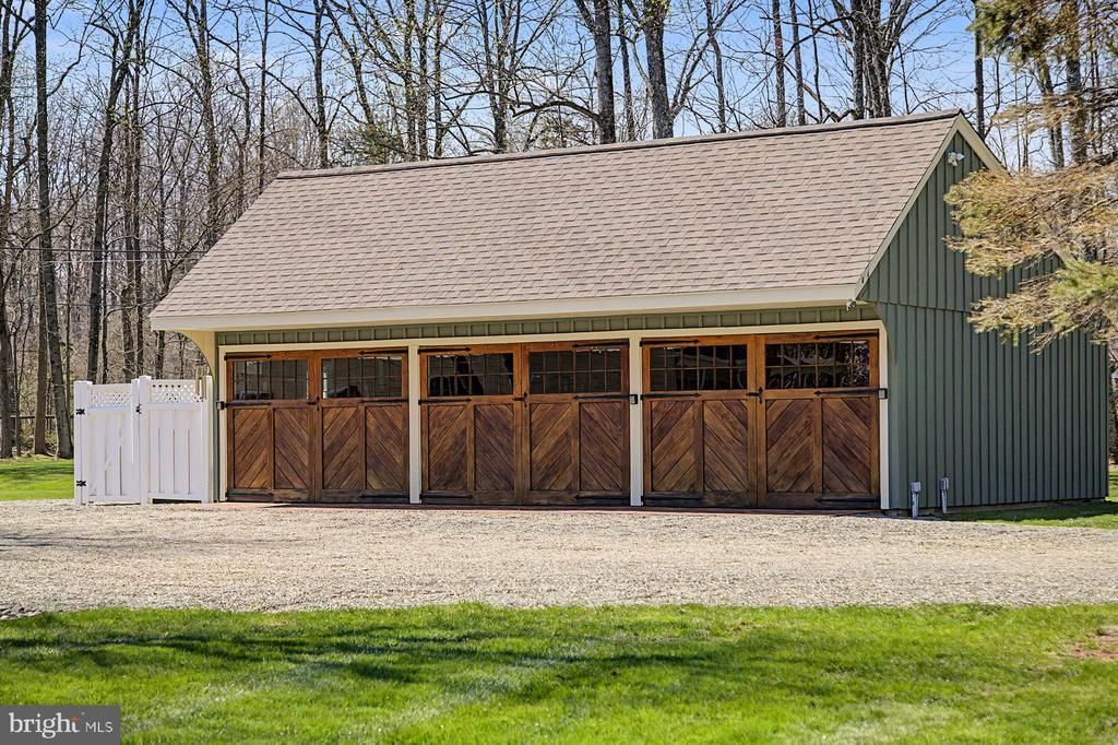 Make sure to watch the video...just click the video reel icon! Tucked behind a gated entrance and surrounded by 12.5 acres of lush, deer-fenced grounds, this enchanting Upper Bucks County property offers the rare opportunity to own a piece of history—beautifully reimagined for modern living. At its heart lies the original c.1700s log house, now transformed into a warm and inviting kitchen and dining space where exposed beams and timeworn textures create an unforgettable sense of place. This historic core is seamlessly complemented by thoughtful updates throughout, including three newly renovated bathrooms, refinished wood floors, and freshly painted interiors and exteriors. Designed for both everyday comfort and relaxed entertaining, the home features a gracious wraparound covered mahogany porch, a sun-drenched rear sunroom with radiant floor heat, and a flagstone patio that opens to sweeping lawns and curated landscaping. A first-floor bedroom provides flexibility for guests or single-level living. Upstairs, the primary bedroom offers a walk-in closet and updated en suite with heated tile floor and double vanity. The third bedroom and updated bath are down the hall. Beyond the main residence, a striking 3-car carriage house/garage adds both function and charm—ideal for collectors, hobbyists, or future creative use. Carriage-style bay doors have heated brick entry pads to facilitate access on snowy days. A long list of updates and upgrades offers peace of mind, including new roofs, new well tanks and water systems, bathrooms, new and refinished floors, electrical, lighting, new generator, and new window shades. Perfectly positioned just moments from Ringing Rocks County Park and a short drive to the Delaware River and its scenic Towpath, the property offers immediate access to hiking, cycling, and the natural beauty that defines the Upper Bucks lifestyle. Easton and the Lehigh Valley are 20 minutes away, and NYC is an easy 90 minute drive. Private, picturesque, and rich with character, this is a property that invites you to slow down, settle in, and stay awhile.